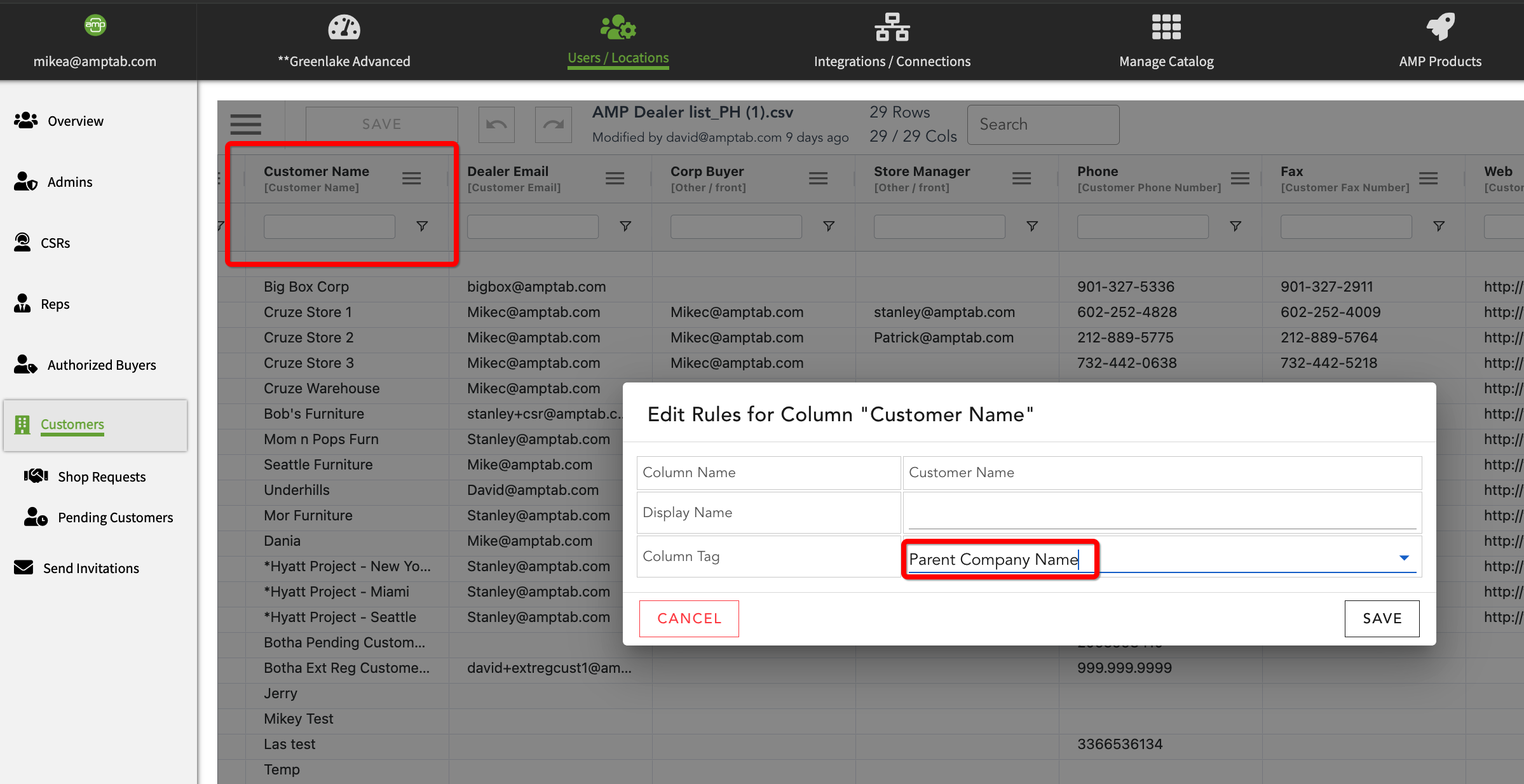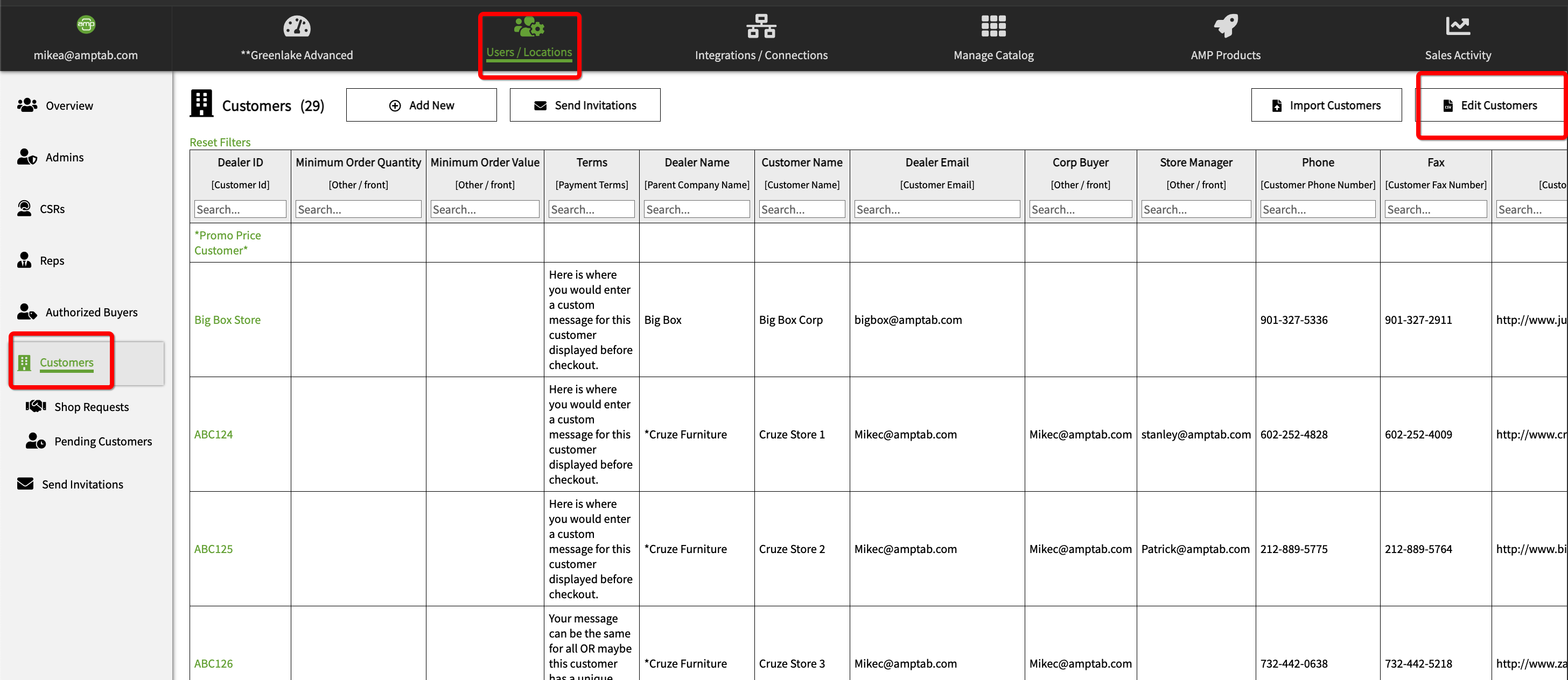 - Navigate to the Users/Locations tab in the AMP CMS.