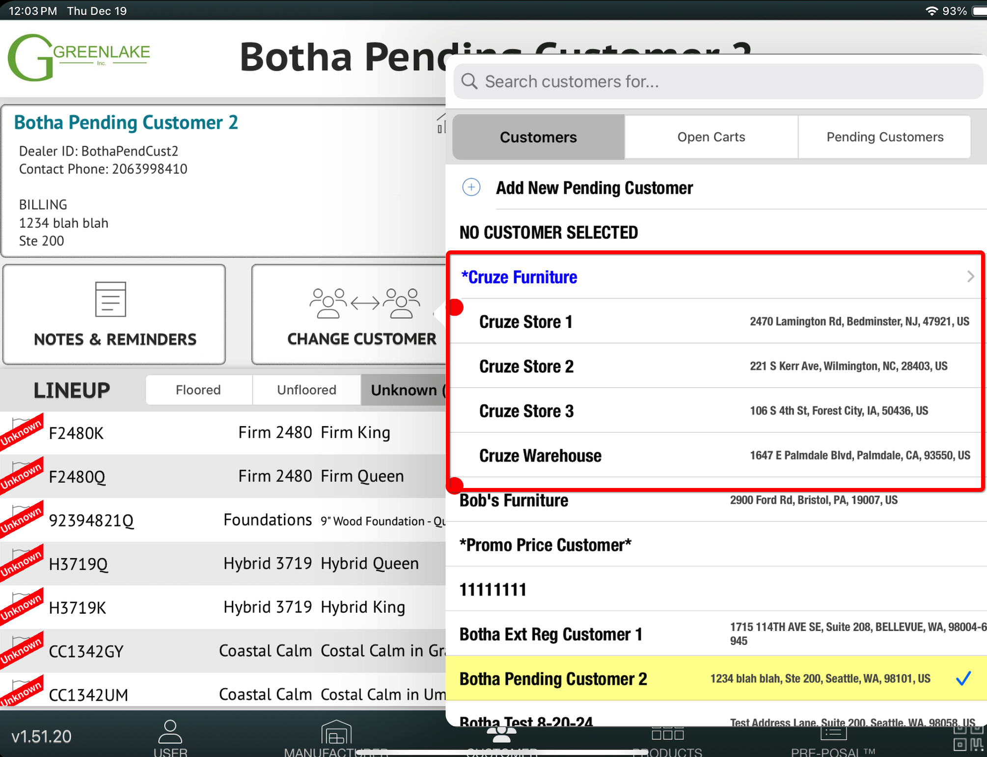 - Click the company name or the caret to open the drop-down menu showing all available shipping locations for that customer.