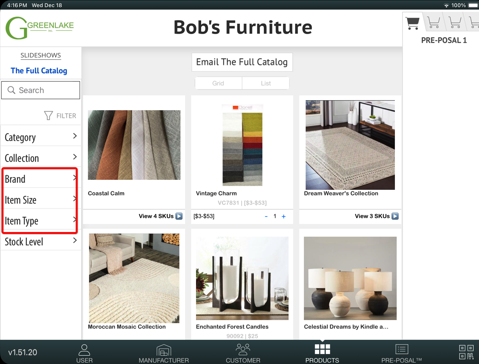 Filters in AMP Shop and AMP Sell help reps and buyers quickly locate products based on specific criteria. By turning certain columns in your product catalog into filters, users can narrow down their search and find exactly what they need more efficiently.